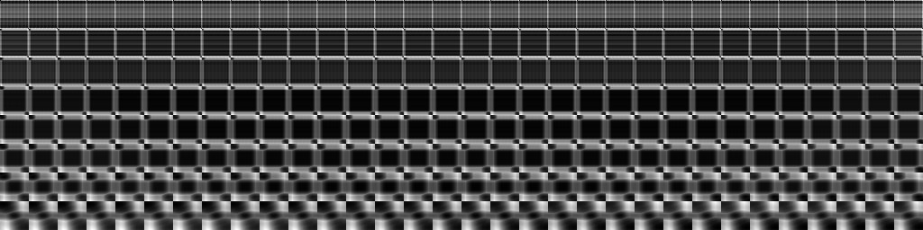 Each small 32x32 pixel tile in this image visualizes a R,G slice of the 3D lattice, there are 32 tiles for B (left to right), and there are 8 rows overall. The first row of tiles is for ETC intensity table 0, the second 1, etc.