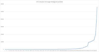 Update 10/1: Okay, I computed a histogram of the "winning" subblock average color correction factors applied over a few hundred test textures. I then selected the top 64 correction factors (out of 165), and don't bother trying the rest. Here's a graph showing the usage histogram of the selector distributions across all the test textures, sorted by frequency (the most successfully selector distributions are to the right).