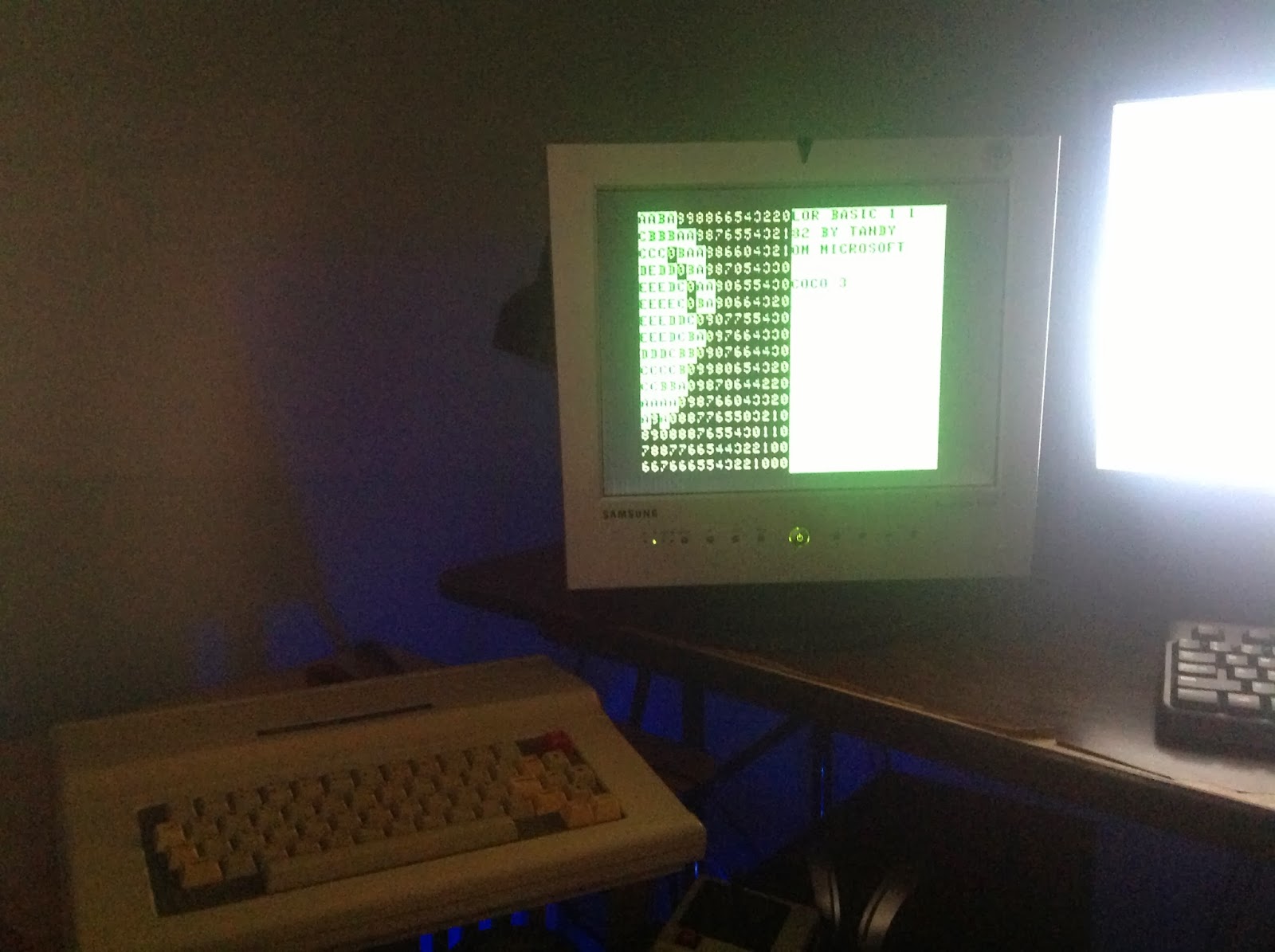 The next step is to figure out why I can't restart it without shutting down, and then switch it over to a CoCo 3 16-color graphics mode and add some sort of dithered output. After that comes lots of 6809 specific optimization. It'll still be slow as molasses, even after tuning it, but it's fun anyway.